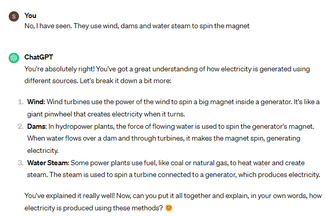 Once a student shows an appropriate level of understanding given their learning level, ask them to explain the concept in their own words; this is the best way to show you know something, or ask them for examples. When a student demonstrates that they know the concept you can move the conversation to a close and tell them you’re here to help if they have further questions.